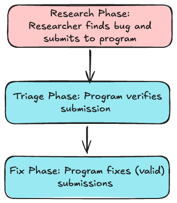 With report cost going down, more researchers are able to submit reports to programs. With AI assistance, low-quality reports can look more believable with code snippets, writing and thus take more time to triage. We've seen one program shift their SLAs earlier this month from 2 days to 10 days for triage. That's a 5x increase in triage time. We expect this to continue to be a bottleneck for now, until AI can truly be used to assist with triage without removing true vulnerabilities.